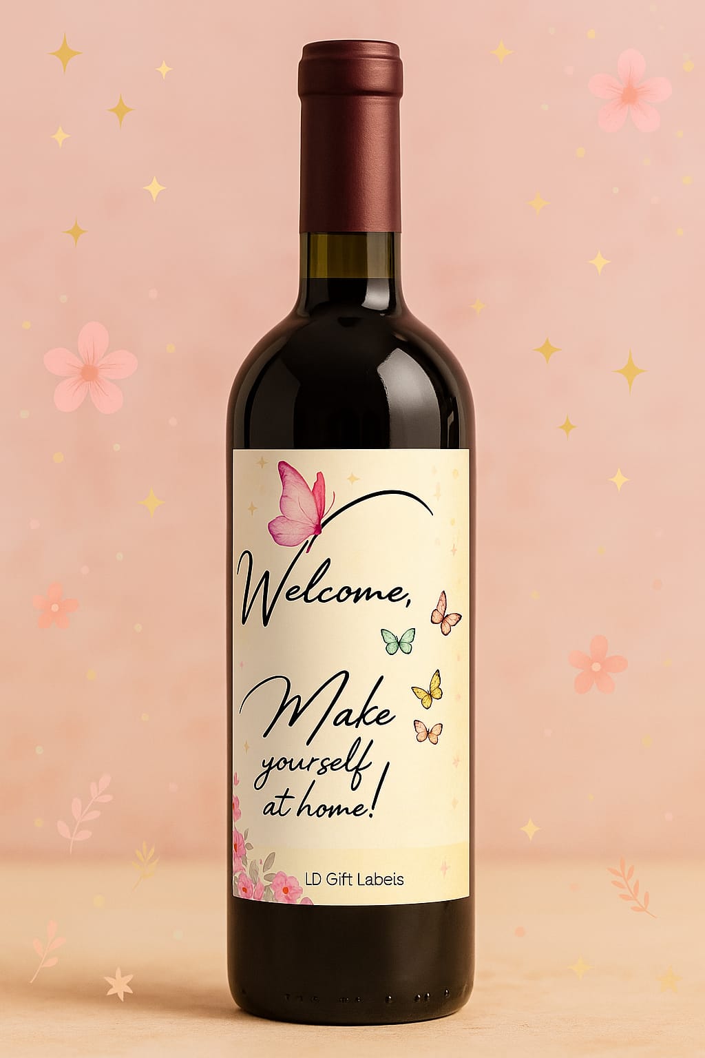 Breng een vleugje charme en warmte in elke ruimte met dit prachtige label. Het delicate ontwerp met vlinders en bloemen straalt gastvrijheid en zachtheid uit.